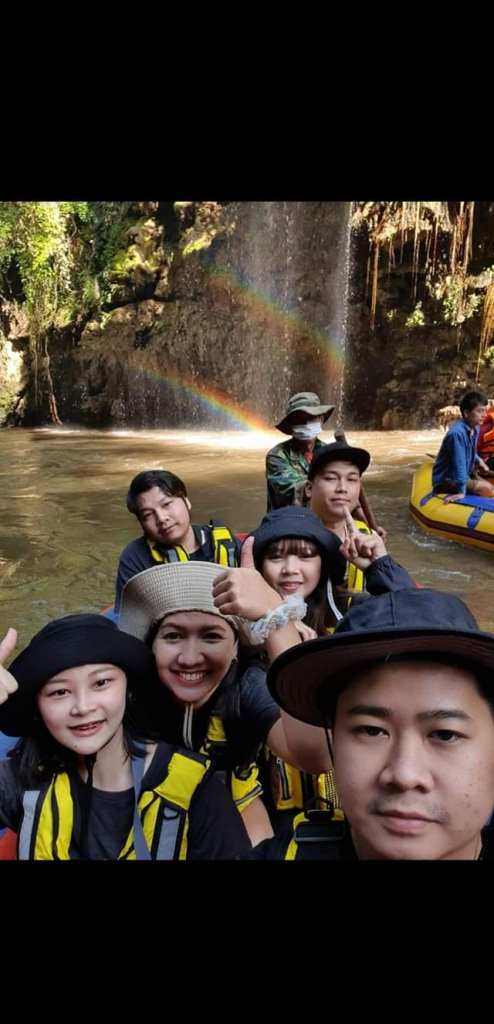 8.45 ล่องเรือชมสายธารธรรมชาติเย็นเจี้ยบ ผ่านบ่อน้ำร้อนตะโค้ะบิ้ สามารถซื้อของกลางทางได้ ดูน้ำตกทีลอจ่อ น้ำตกสายรุ้ง ผาเลือด หินต่อ ล่องแก่งเล็กๆพอสนุกสนาน